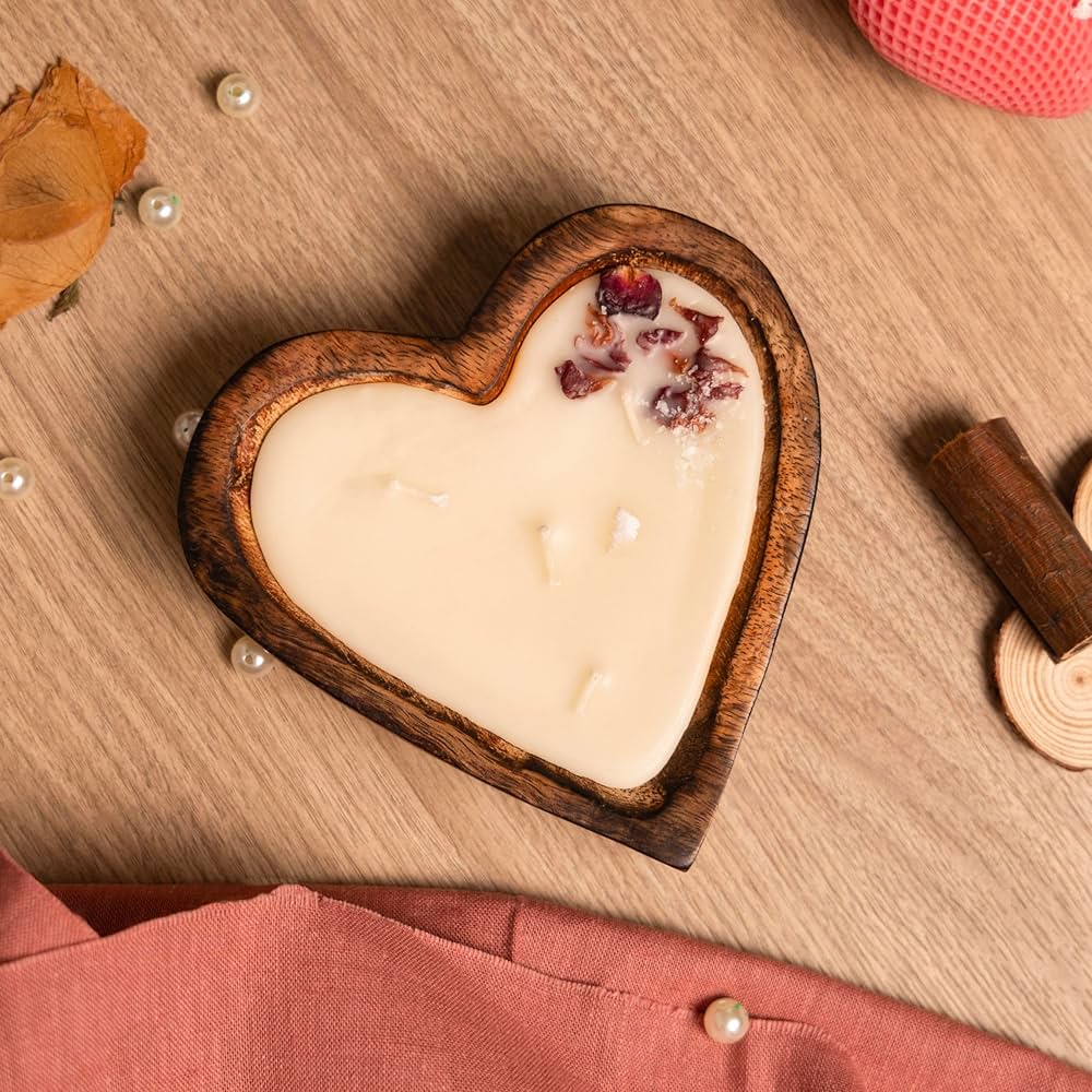 Wooden candle heart bowl