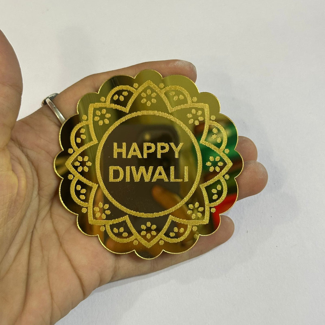 Quantity-1 Material: Acrylic Size : 3.5*2.5 inch approx best for diwali hamper , diwali cutout...