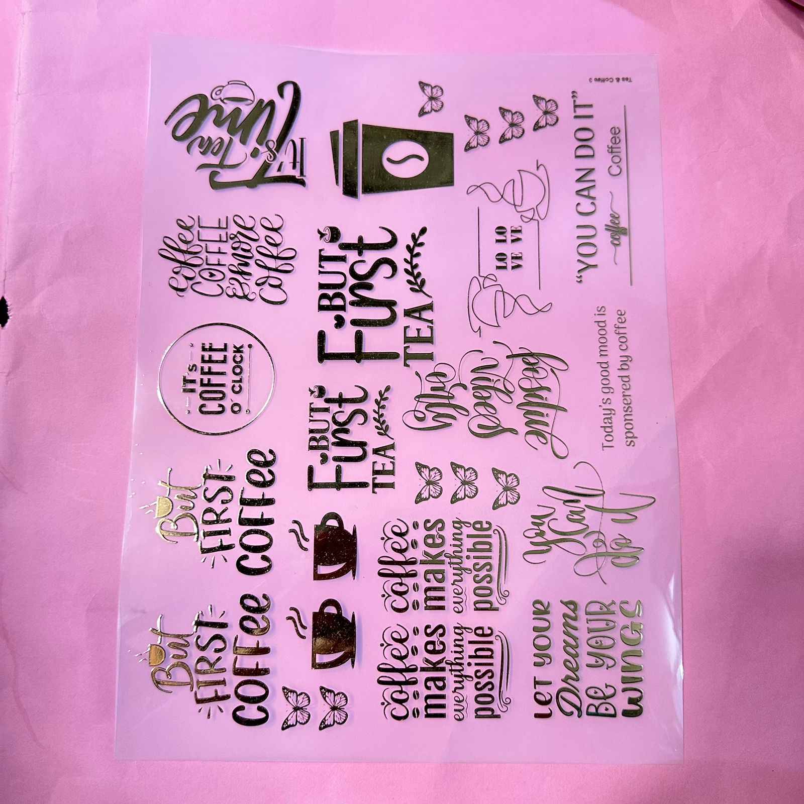 Tea & coffee metal insert sheet A4